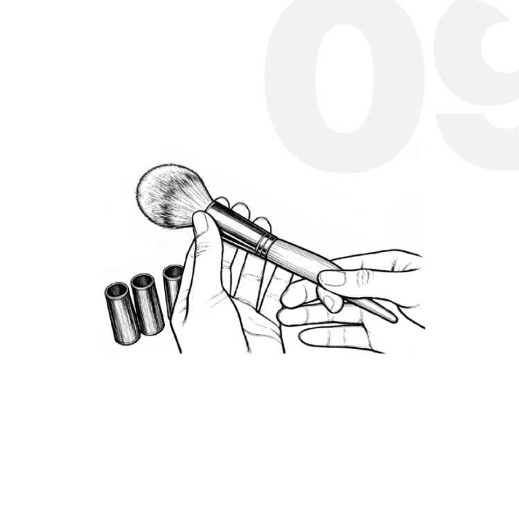 每一把优 秀的化妆刷,都是匠心与标准的结晶。在宇彤,我们建立了一套严苛的“全链路品质管理体系”。从原材料入库的初步筛选,到 80 余名资 深工匠的手工理顺刷毛,再到成品出厂前的最 后一道质检,每一道工序均实施“零缺陷”管控。